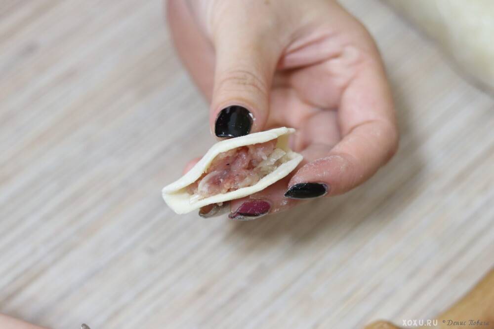 Хорошие пельмени гладкие, без растрескиваний, прочно скреплены по краям – начинки не видно.