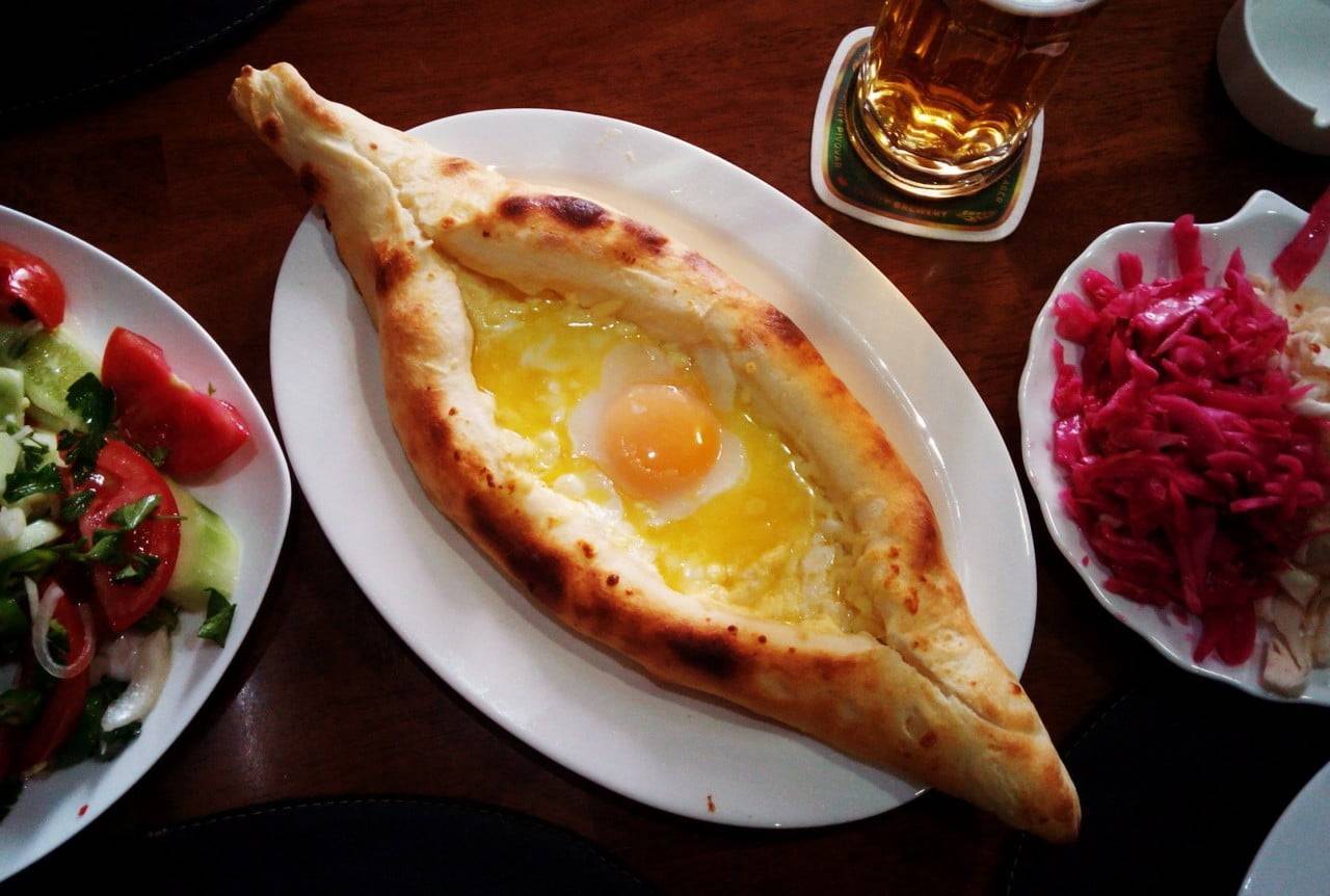 Отправляем хачапури в разогретую до 200 ° С духовку на 25—30 минут. Затем достаем хачапури и вбиваем в серединку каждого яйцо. Додерживаем хачапури с яйцом в духовке, чтобы белок запекся, а желток оставался жидким (не пропустите этот момент!!!), и достаем. Подавать хачапури нужно горячими, положив сверху каждого кусочек сливочного масла