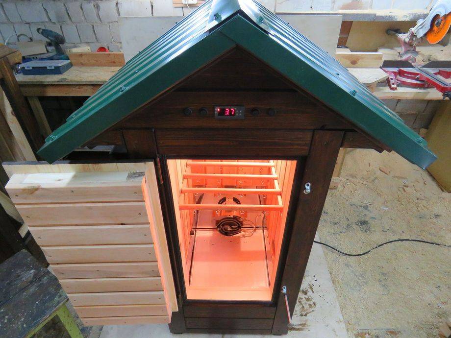 Корпус готовится точно так, как описано в разделе выше. На его дно монтируются электрические тены, мощностью до 12 кВт. Тены должны обеспечивать уровень температуры от 60 до 80 градусов. Естественно, короб должен быть закрыт.