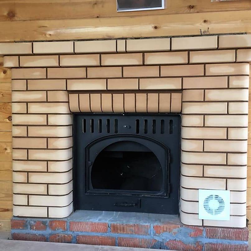 При проведении работ нужно убирать лишний раствор, который попадает на кирпичную кладку с лицевой стороны. Когда основа будет готова, можно делать декоративное оформление вокруг дверцы топки.