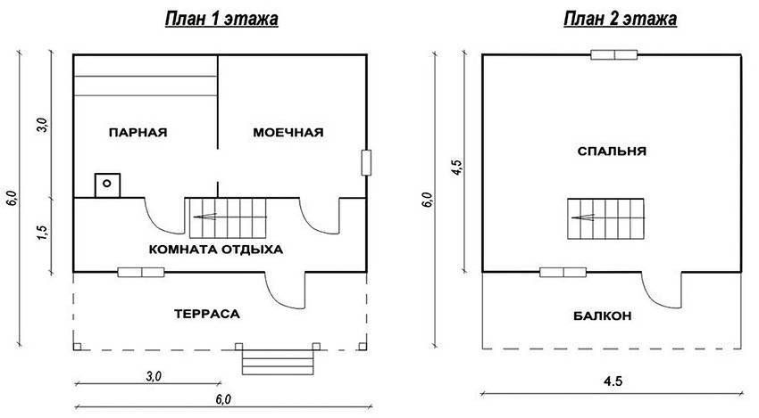 Проект бани размером 6х6 м со вторым мансардным этажом