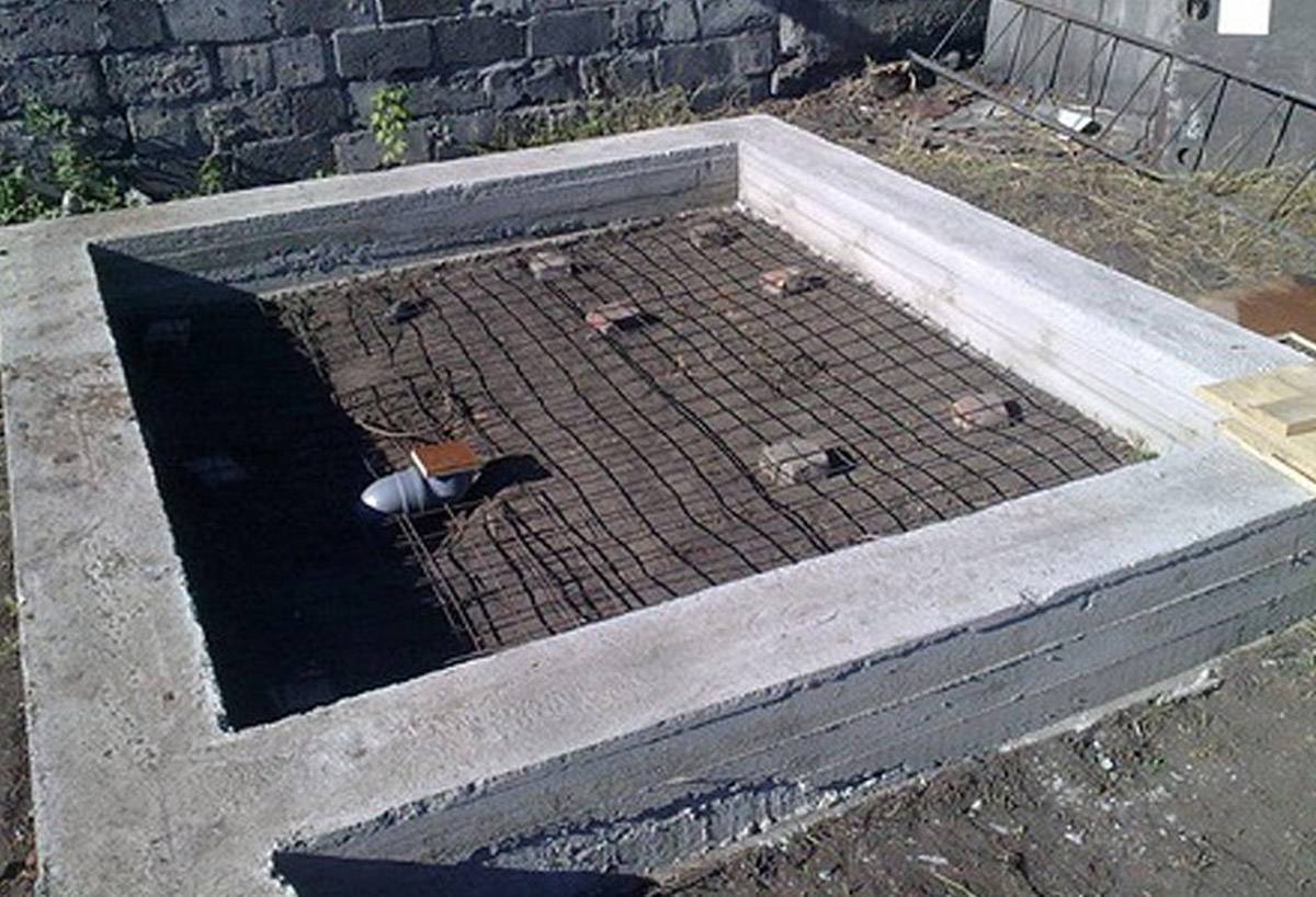 - После чего приступаем к бетонному основанию под печь и проводим необходимые коммуникации (для слива воды и т.д.).