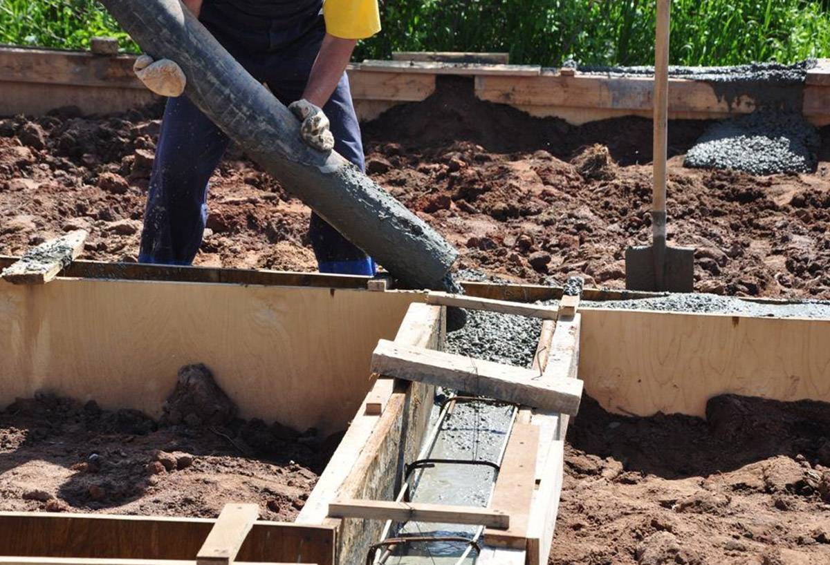 Для правильной закладки ленточного фундамента из бетона необходимо вырыть по периметру согласно проекту канаву 60х30 см. С помощью лазерного или другого уровня делается разметка и по углам и вдоль ее стенок через 1,5-2,0 м. вбиваются штыри. Они соединяются натянутым шпагатом. Сколачивается дощатая опалубка высотой примерно 80 см, в которую помещается каркас из 12-миллиметровой арматуры. При этом в будущем фундаменте устраивается канализационный слив, другие необходимые отверстия.