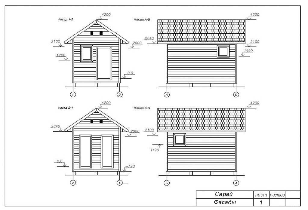 Лист фасадов из проекта сарая