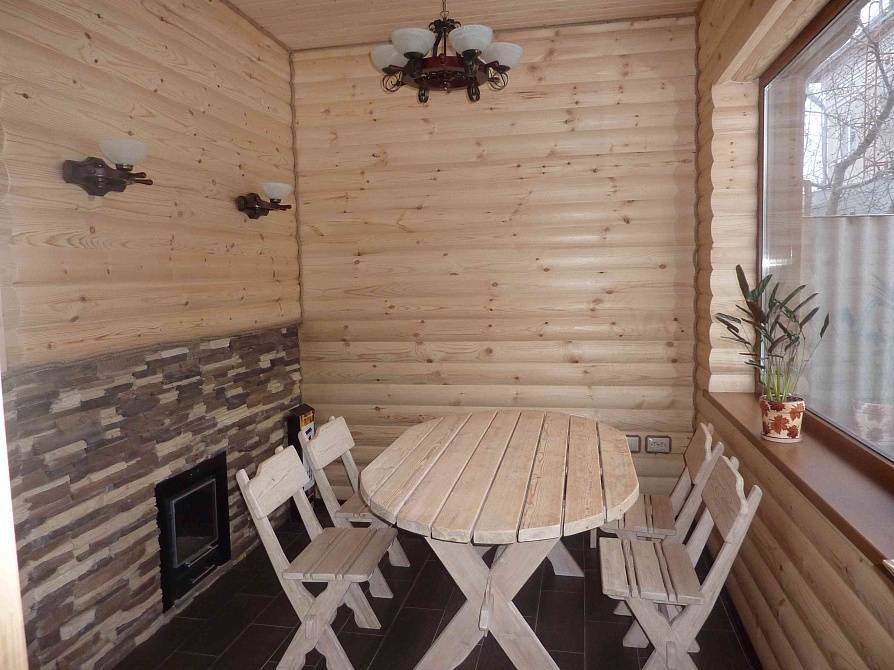Внутри лучшего использовать дерево, причём не только для стен и потолка, но и для предметов мебели.