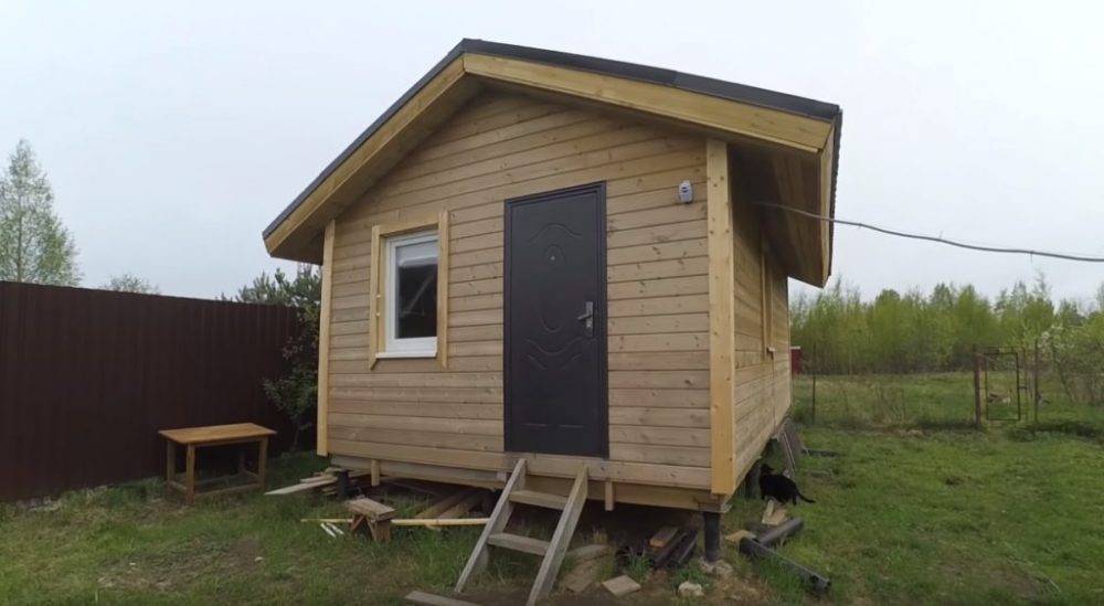 Первый проект — каркасный домик, который трудно назвать типовой баней. Скорее всего, это полноценный дом с баней, поскольку в нем есть и жилая зона с кухней, и непосредственно баня.