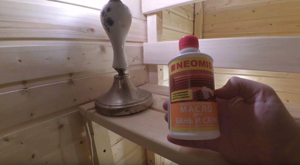 Производители выпускают специальные масла для полков, которые не образуют на поверхности пленку, так как при нагревании она может вызвать ожоги. Кроме того пропитка должна быть высокого качества, и не должна вызывать аллергические реакции на коже.