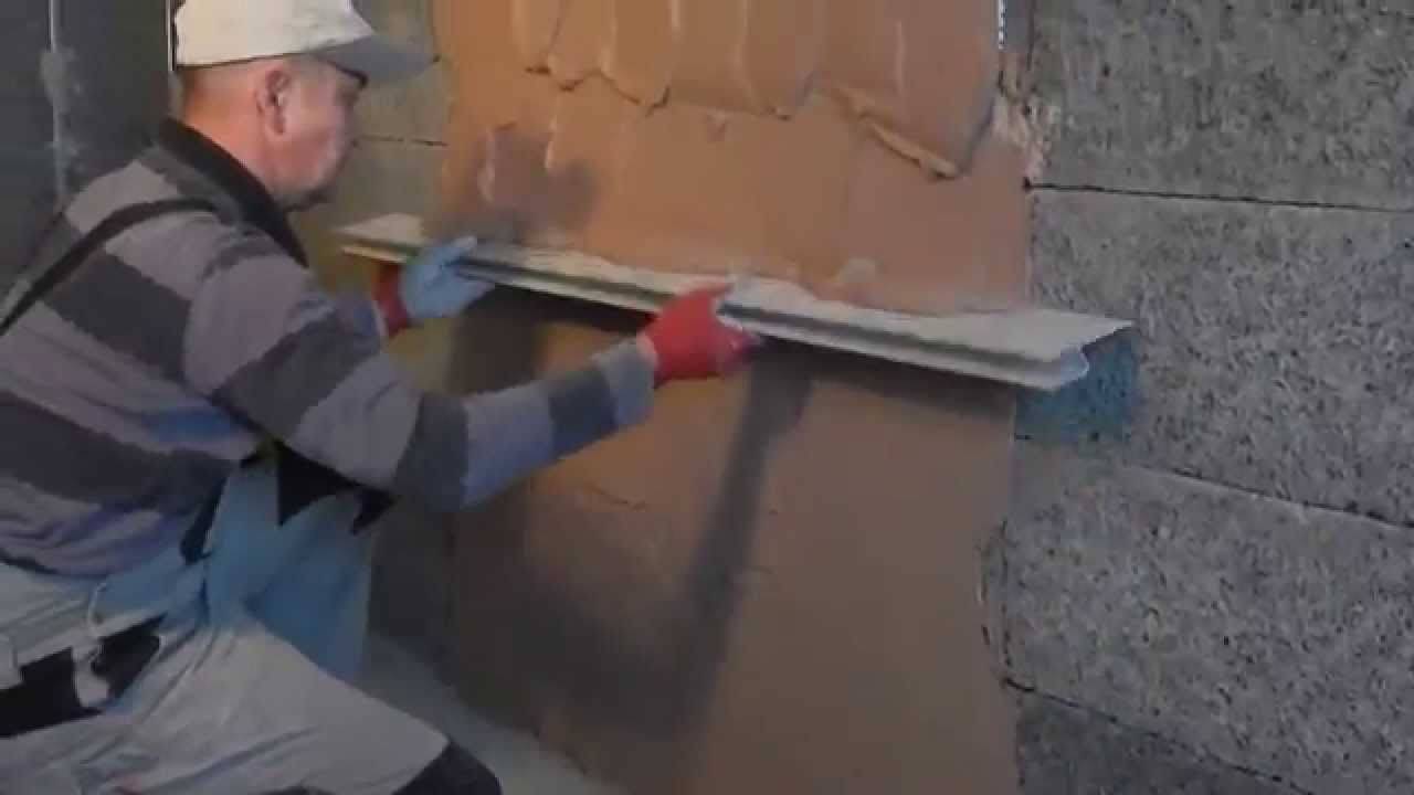 На видео: штукатурка стен по маякам.