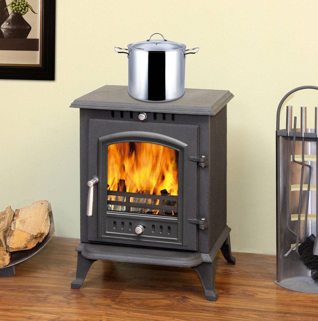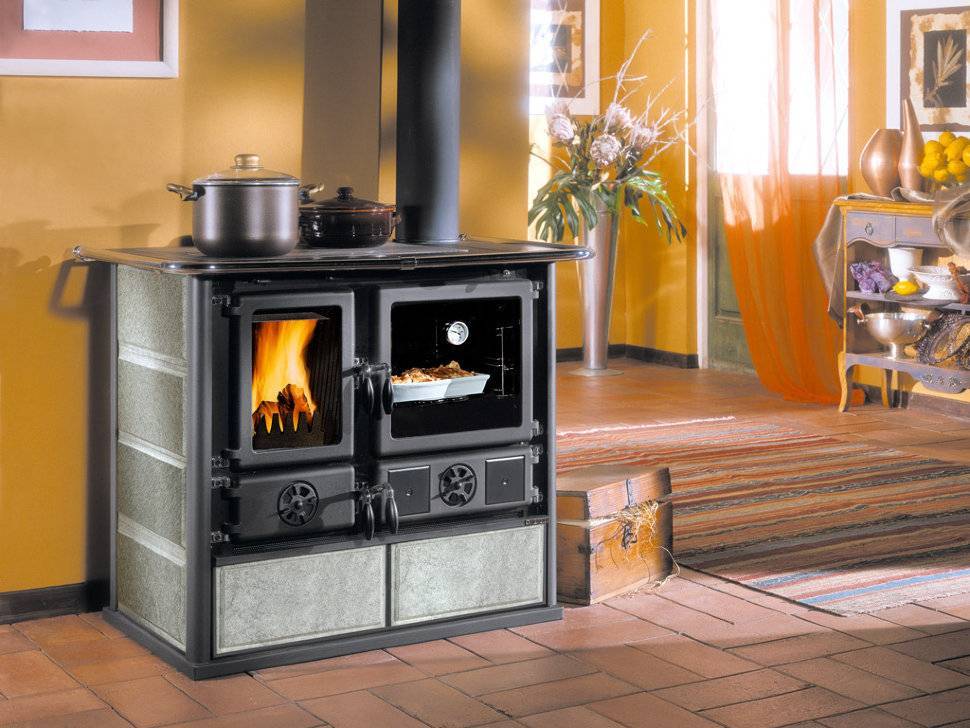 Часто за чертой города не получается подключиться к теплоцентралям или провести в дом магистральный газ. В этом случае целесообразнее будет использовать многофункциональные модели приборов, которые соединяют в себе камин, варочную поверхность и отопительный котел. В устройстве данных печей вмонтирован теплообменник, а верхняя часть изготовлена в виде плиты для приготовления пищи. В отдельных конструкциях предусмотрена вероятность получения горячей воды для бытовых нужд. Поэтому подобные печи оснащены специальной накопительной емкостью.