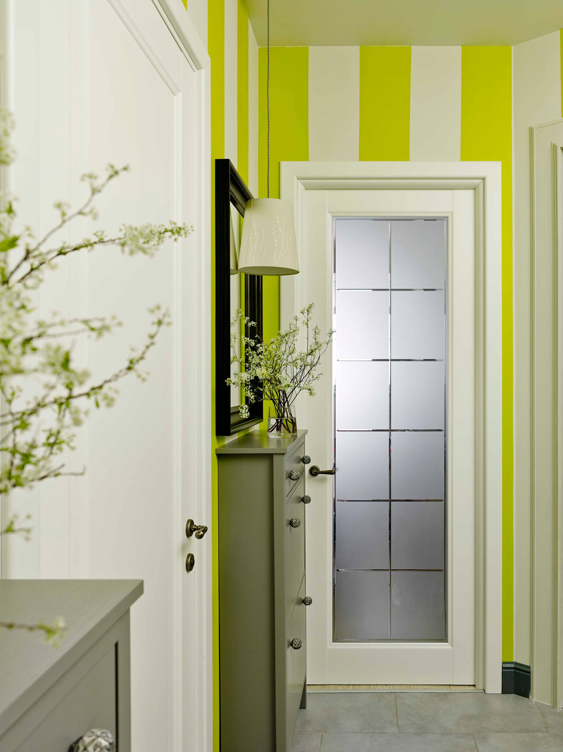 Белая дверь в небольшой прихожей сделает ее светлее