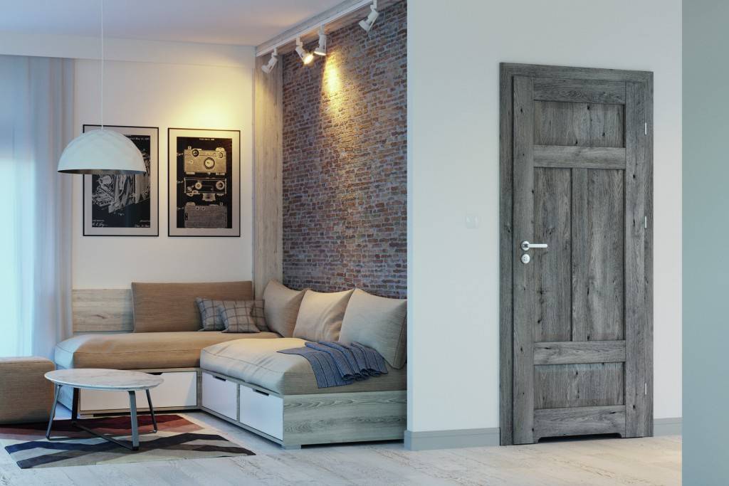 Для светлой гостиной дверь выбирается лишь с намеком на серый тон. Она украсит и скандинавский дизайн, и традиционную классику.