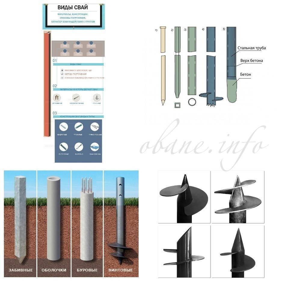 Как мы уже говорили, свайный фундамент для бани может использовать различные материалы для изготовления рабочих элементов. Остановимся на этом подробнее: