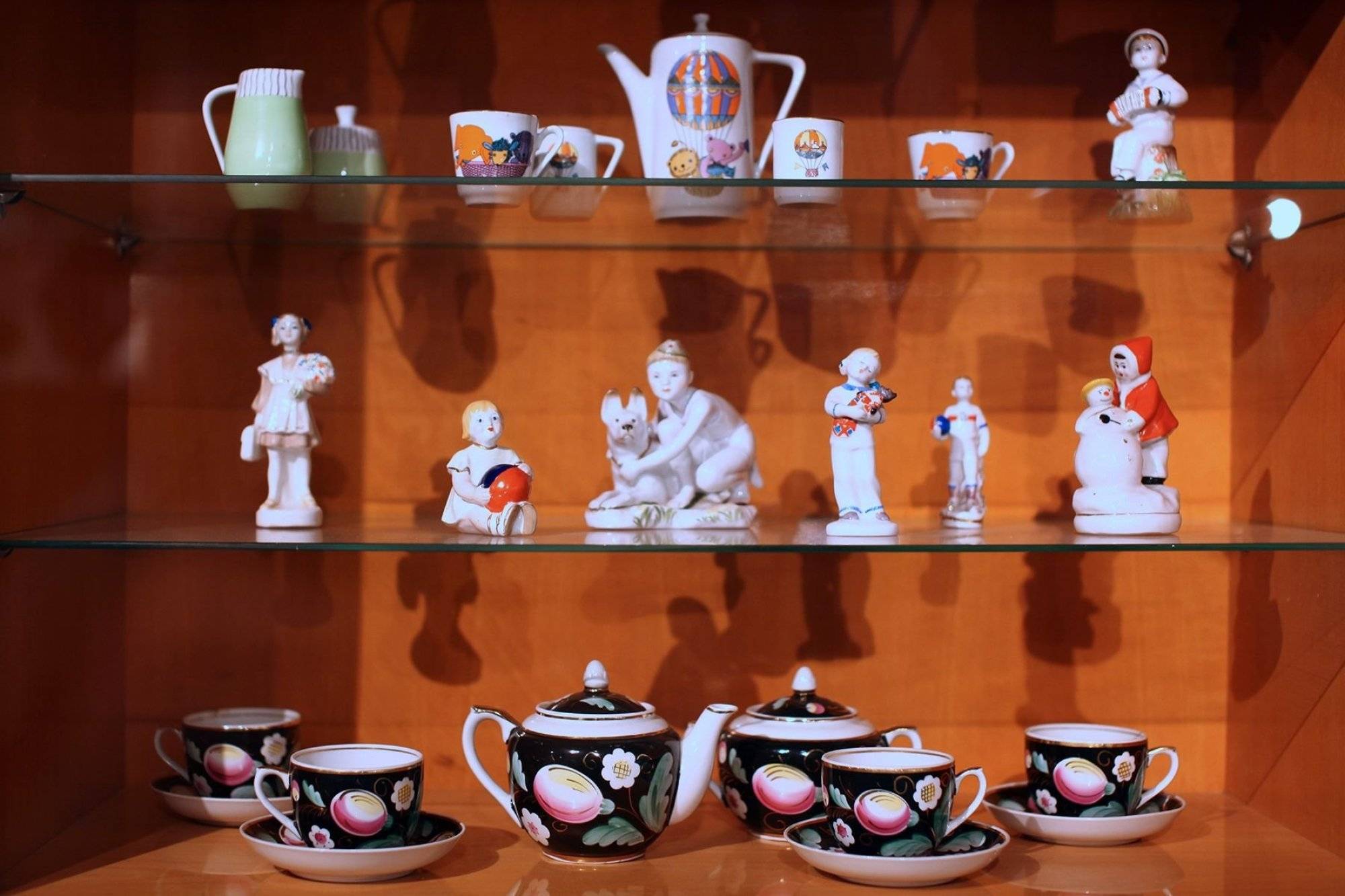 Довершат стилистику раритетные фарфоровые фигурки, чайный сервиз Ленинградского фарфорового завода.