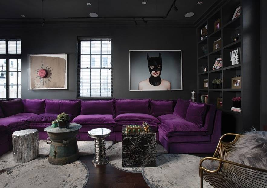 Сиреневые. На сиреневом, лавандовом, лиловом фоне черные предметы мебели смотрятся особенно выигрышно. Если фиолетовый или аметистовый цвет в комбинации с черным кажется слишком вызывающим, его можно использовать для декора одной, акцентной стены.