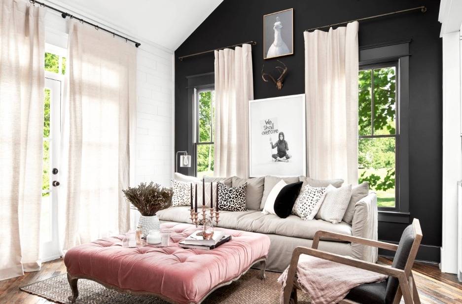 Опытные специалисты рекомендуют избегать сочетания черного цвета с коричневым, зеленым или фиолетовым. В противном случае гостиная может получиться достаточно мрачной и даже безжизненной. В то же время, эти тона могут быть уместными в качестве небольших акцентов в виде декора. Но если их заменить более светлыми тонами, такими как кофейный, салатовый или лавандовый, то помещение будет выглядеть совершенно по-другому. Что касается ярких оттенков, таких как красный, оранжевый или желтый цвет, то в данном случае они не уместны. Поскольку такое сочетание агрессивное и редко подходит для интерьера.