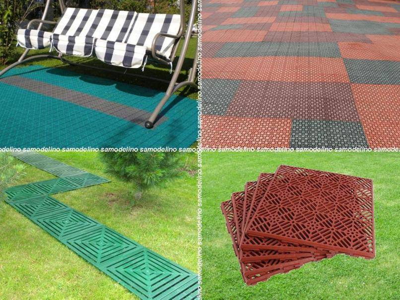 Дорожки и площадки из перфорированных пластиковых модулей имеют привлекательный вид, легко собираются и переносятся на новое место. Плитка из пластмассы может быть уложена на грунт, газон и гравий. При этом основа должна быть достаточно плотной и ровной.