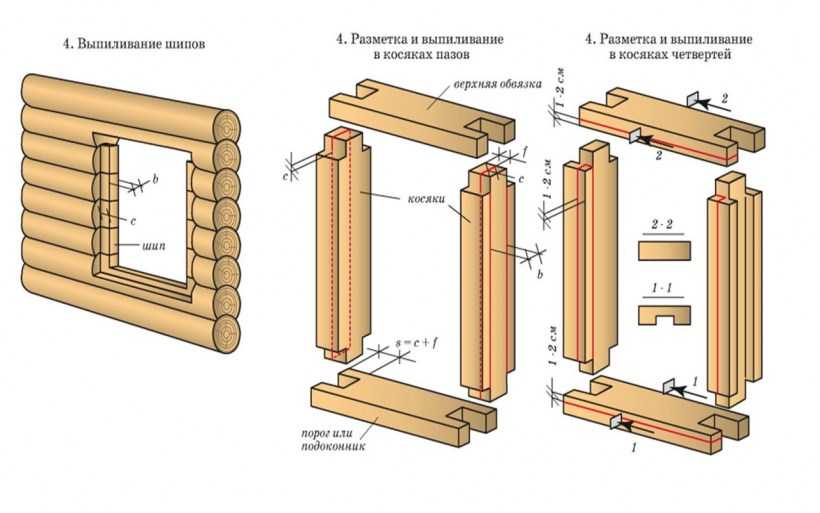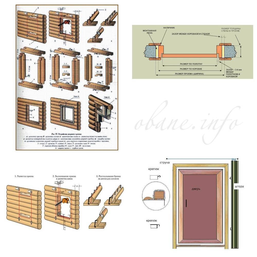 Чтобы снизить риски, используют окосячку или обсадную коробку. В этих целях обрамляют проем с помощью толстой доски. Этим получится сгладить изменения высоты и поддержать концы бревен. Задействуется несколько способов.