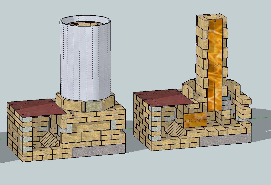 Особое внимание уделяют местам установки футеровочного слоя — на схемах они выделяются пунктиром или другим цветом. Учтите, что если вместо огнеупорного материала будет использован обычный кирпич, то такая печь будет не только недолговечной, но и малопроизводительной