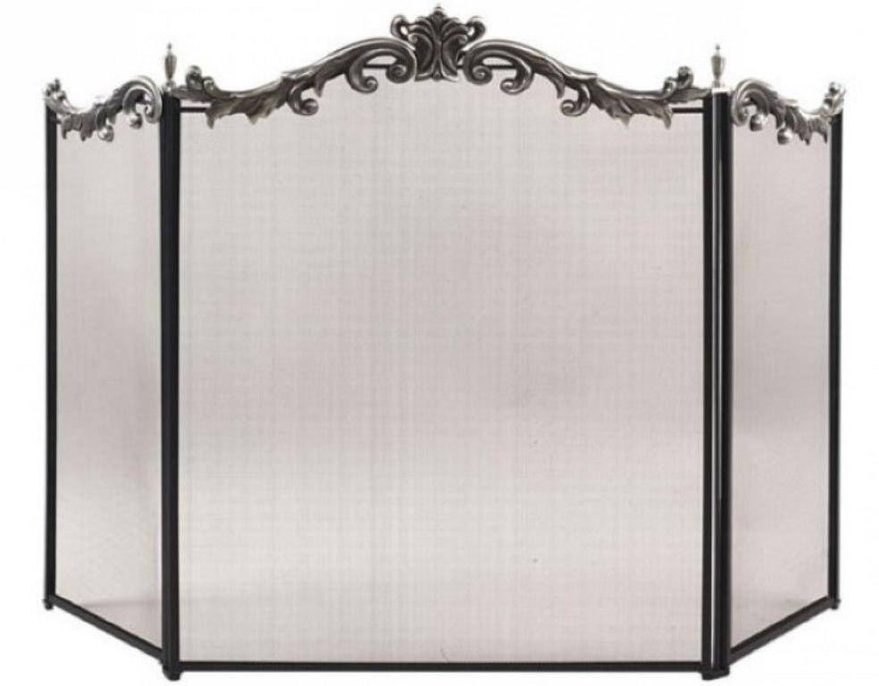 - конструкция составного экрана представляет собой несколько отдельных панелей на устойчивых прочных опорах, которые выставляются полукругом перед камином для надежной защиты от раскаленных углей и искр;