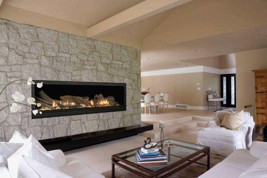 Такой камин выступает стилистическим акцентом гостиной, а поэтому его расположению и оформлению нужно уделить пристальное внимание;