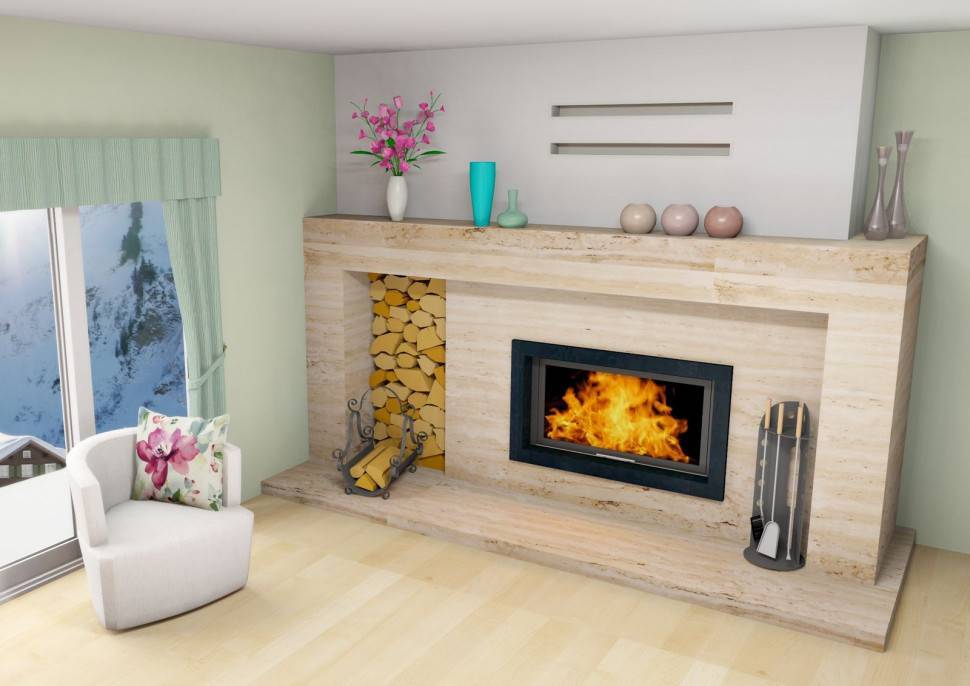- есть возможность создать видимость традиционного камина, установить каминный портал, который вы сможете отделать любыми материалами.