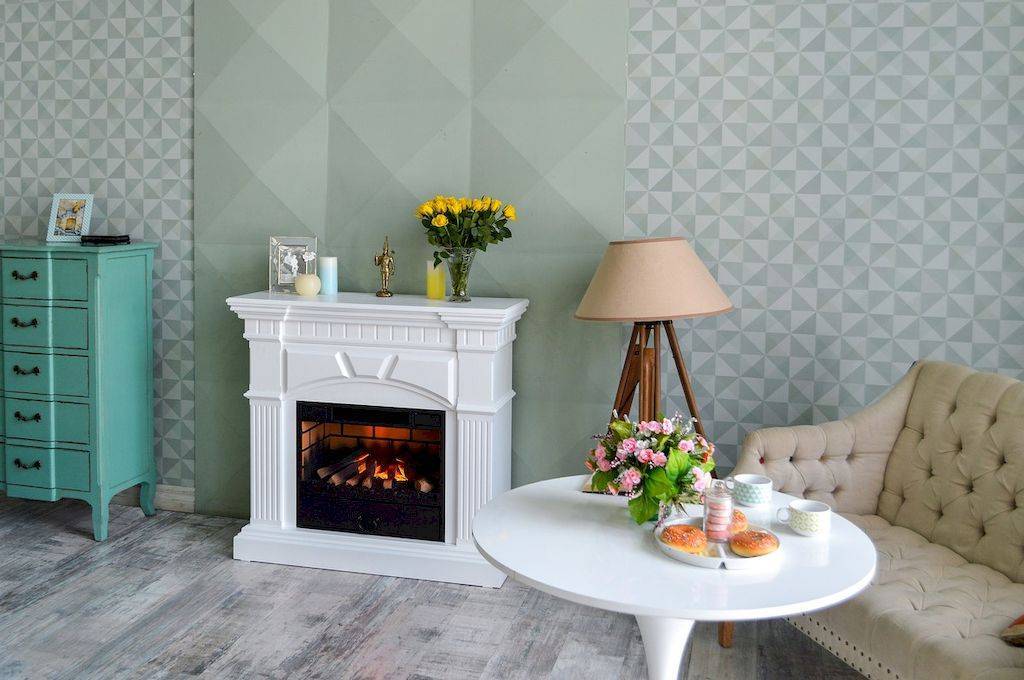 Внешний вид электрического камина определяет портал или оформление стены вокруг встроенной модели, например.