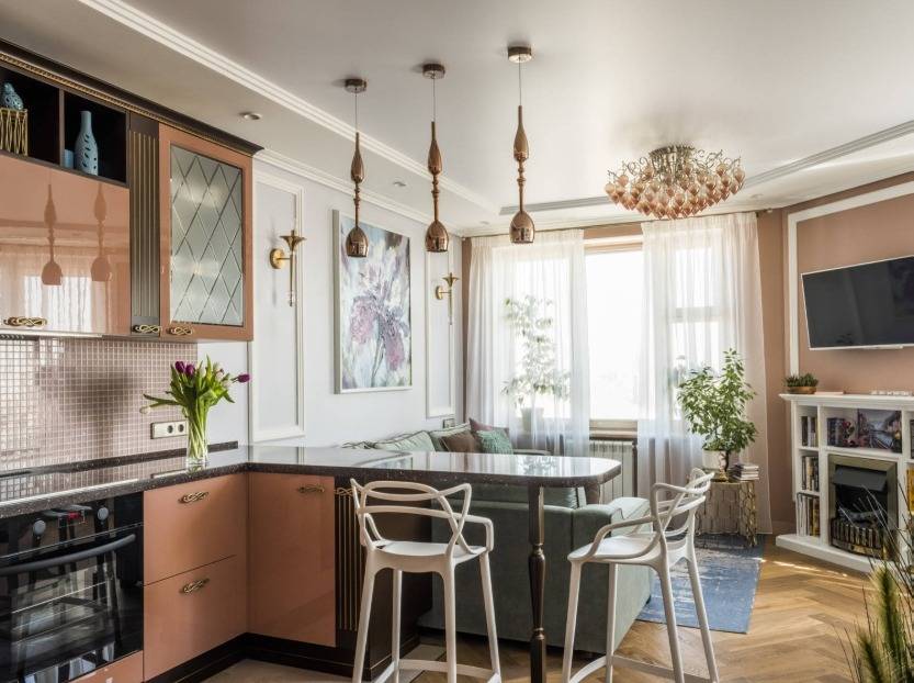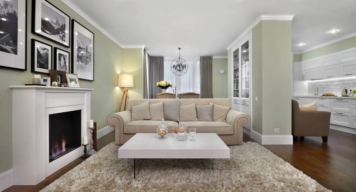 Рекомендуем обратить внимание на светлые теплые тона. Они сделают гостиную еще более уютной