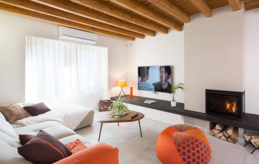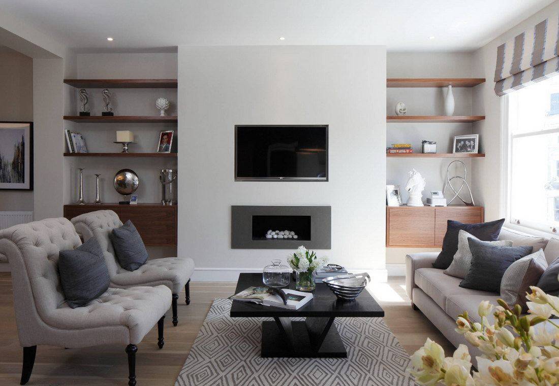 Небольшая гостиная в квартире или просторное помещение в частном доме станет теплее и уютнее с камином