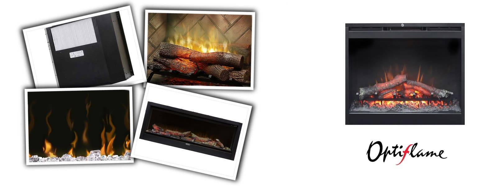 Технология пламени Optiflame позволяет создать реалистичную имитацию благодаря применению зеркальной поверхности и вращающегося металлического стержня с металлическими лепестками, которые походи на миниатюрные языки пламени. Благодаря свету галогеновых ламп, установленных в очаге, свет падает на лепестки и отображается на зеркальном экране в виде языков пламени.
