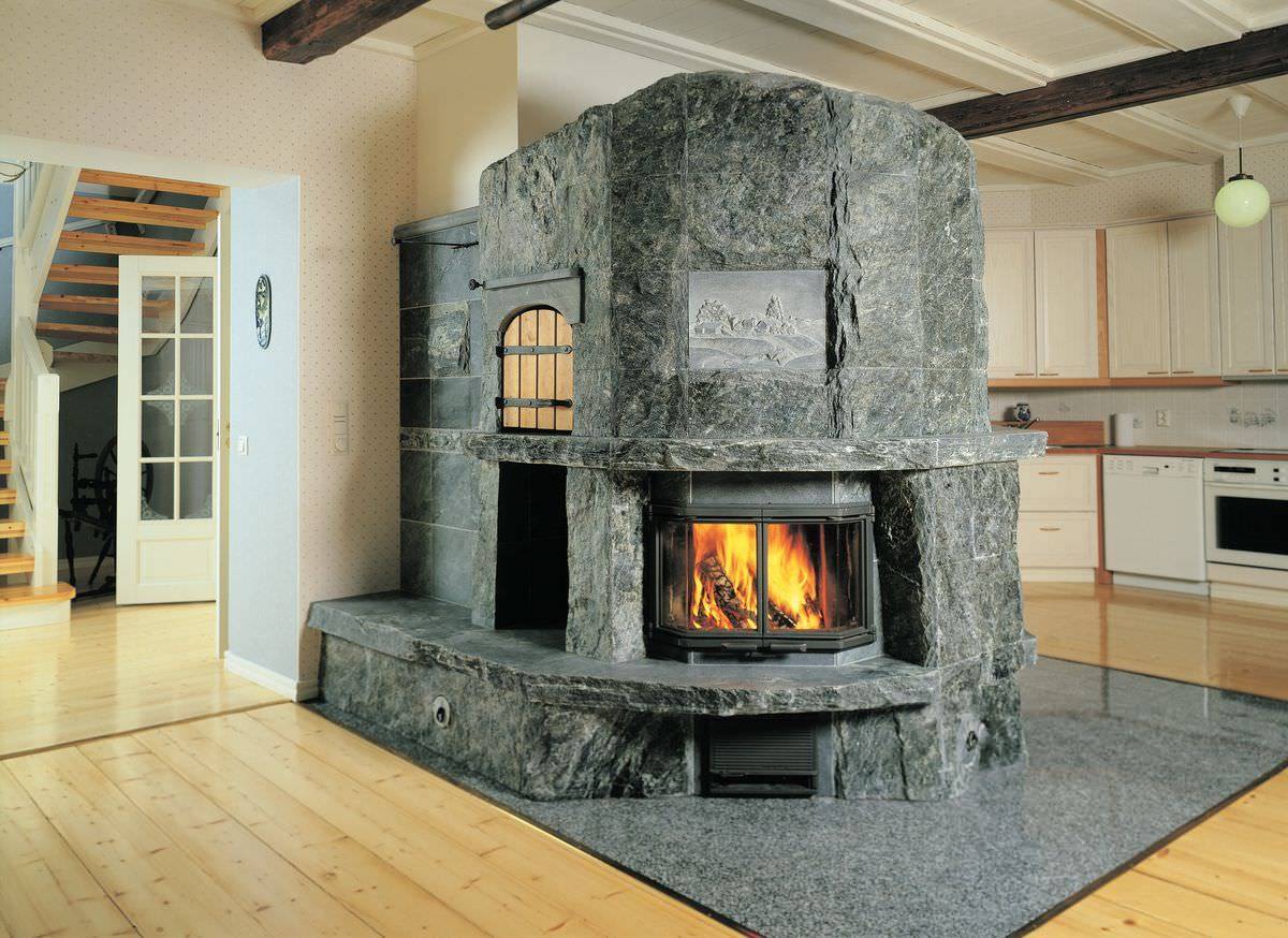 Еще одним природным материалом, который финские производители стали использовать в твердотопливных печах, является талькохлорит. Он обладает высокой устойчивостью к температуре, выдерживая до 16 тысяч С. Печи, изготовленные из талькохлорита способны нагреваться всего за 2 часа, при этом они продолжают отдавать тепло комнате еще в течение суток после отключения. Единственный нюанс – эффективность прибора из такого материала во многом зависит от его размеров. Чтобы добиться высокой эффективности тепло обеспечения, производители выпускают модели больших размеров, что существенно влияют на их цену.