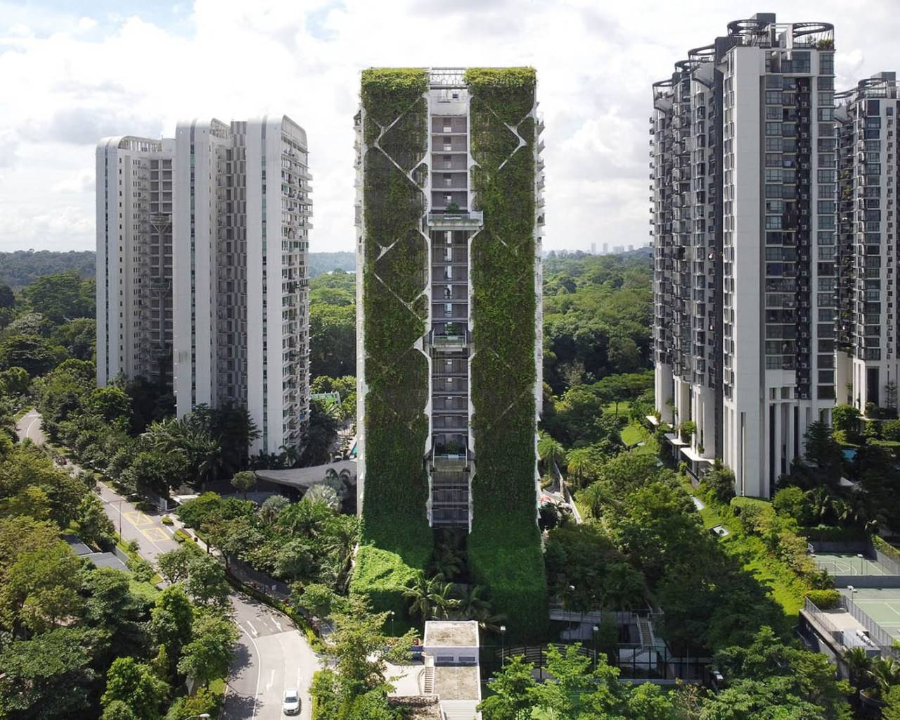 Жилой дом «Tree House» в Сингапуре входит в «Книгу рекордов Гиннесса» как самый большой вертикальный сад в мире. Здание построено из экологически чистых материалов, а растения на стенах уменьшают углеродный след путем фильтрации загрязняющих веществ и углекислого газа из воздуха. Окна спроектированы с учетом жаропонижающих технологий, помогающих сохранить в доме прохладу в течение дня, что помогает сэкономить энергию на кондиционировании