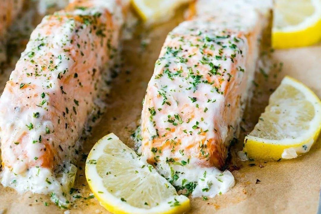 Форель намного жирнее, чем горбуша и кета. Во время запекания рыба не подсыхает. Стейки форели можно приготовить в духовке даже без фольги. Однако противень всё же стоит застелить пергаментом, чтобы не допустить пригорания рыбы.