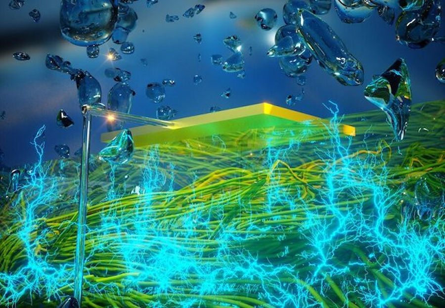 Графическое изображение пленки из белковых нанопроводов, вырабатывающих электричество с помощью влаги из атмосферы