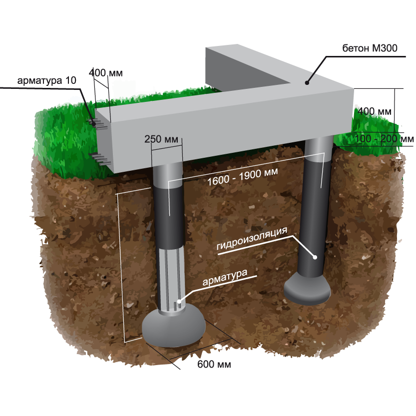 Минус классических свай — при сильном пучении выталкиваются почвой. Во избежание такой ситуации, под опорой стали выполнять армированную бетонную подошву. Но траты на строительство параллельно растут, требуется большой объем земляных работ.