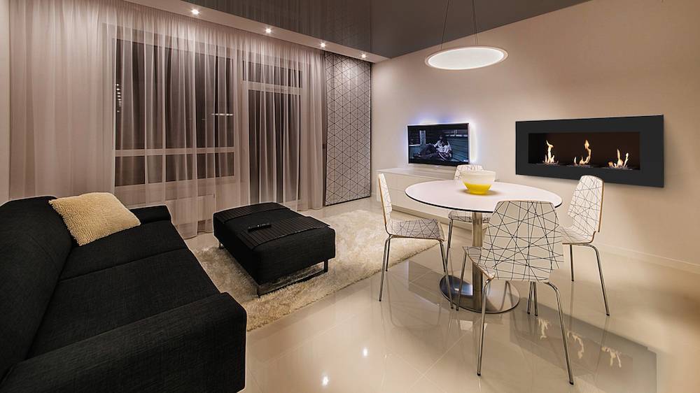 Если вы собираетесь использовать экологический камин в гостиной, помните несколько правил, которые позволят вам оставаться в безопасности. Камин такого типа может стоять где угодно, но убедитесь, что вокруг него нет легковоспламеняющихся предметов — держите его на расстоянии не менее 40 сантиметров от других предметов. Экологичный камин в гостиной обогатит интерьер и дополнительно позволит вам быстро обогреть комнату. Не бойтесь углекислого газа — его количество невелико, поэтому оно не будет угрожать здоровью членов семьи, но обеспечит правильную вентиляцию помещения.
