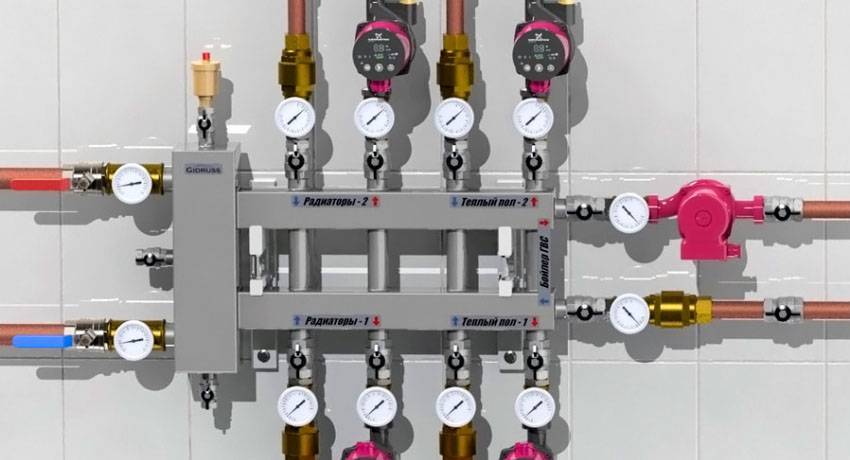Разделитель разделяет систему отопления как минимум на две части. Одна петля относится к котлу отопления, вторая петля объединяет разводку отопления дома. В каждой петле установлен циркуляционный насос.
