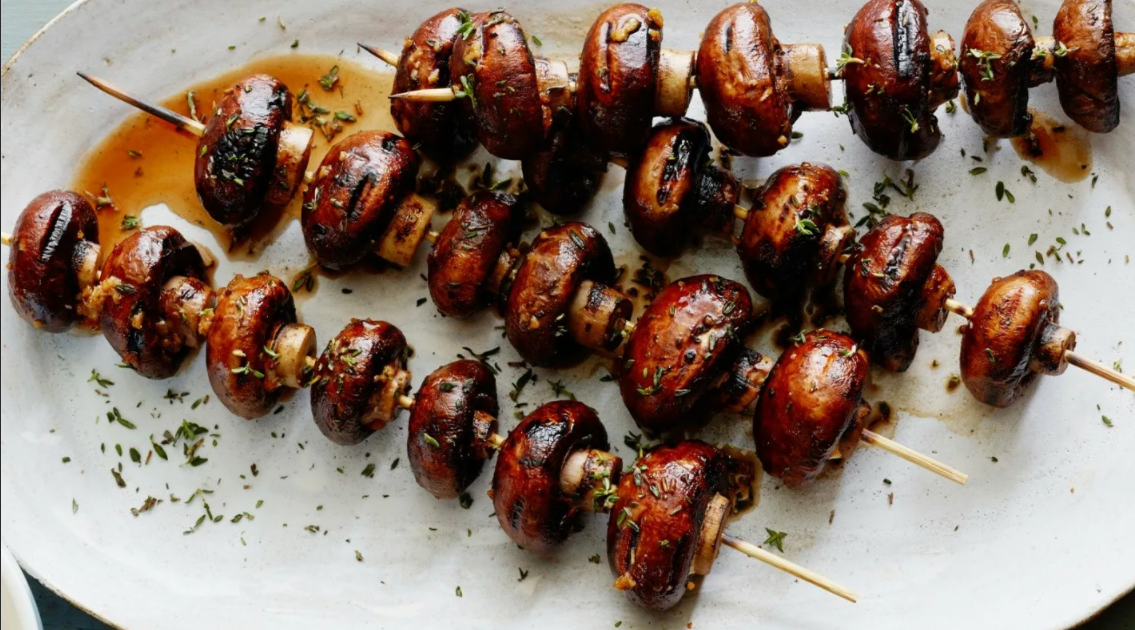 Поджаренные на шампурах грибы имеют особый аромат дымка и маринада. Для приготовления такого блюда необходимы такие ингредиенты: