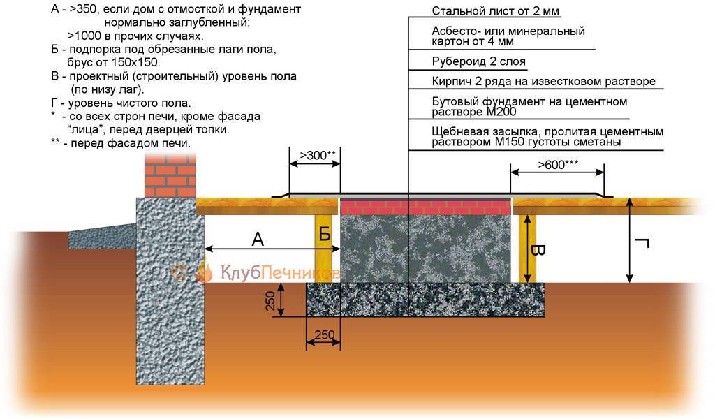 Какой бы вариант фундамента под печь вы ни выбрали, и какой бы размер не решили реализовать, существует ряд основных правил, игнорировать которые не стоит: