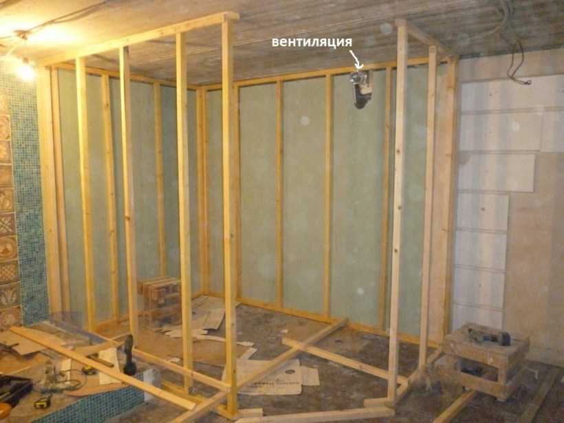 Хамам в деревянном доме делают на основе профилей из металла. Из них выстраивают купол и стены парной, к ним же крепят специальные панели, изготовленные из теплоизоляционных материалов с высокими гидроизолирующими свойствами. Такими панелями необходимо заполнить абсолютно все пространство между стенами хамама и деревянными конструкциями дома. Для повышения влагостойкости на панели наносят герметики, используемые для гидроизоляции бассейнов, а на них крепят сетку из стекловолокна. Только после этого выполняют отделку стен мозаикой или плиткой.