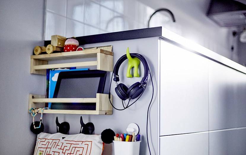 Некоторые предметы можно поместить на оборотной стороне дверей; для этого нужно прикрепить держатели либо корзину, чтобы получить дополнительное полезное место для хранения и поддержания порядка.