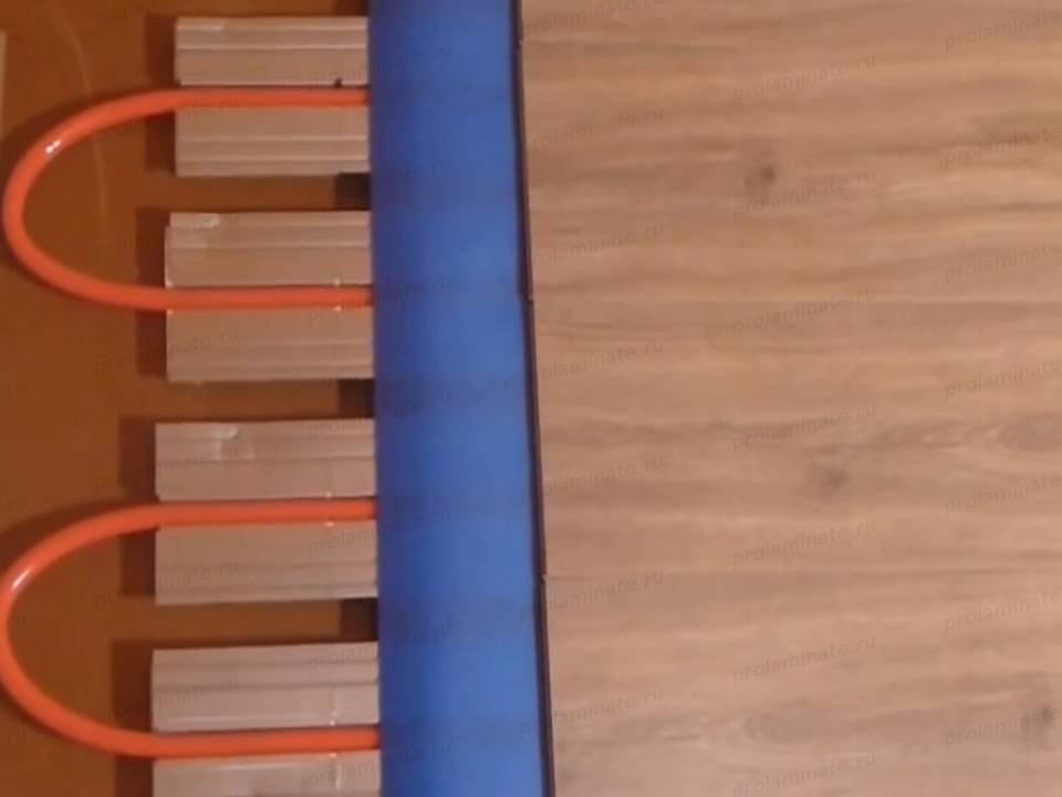 - На залитый водяной теплый пол укладываем подложку и ламинат.