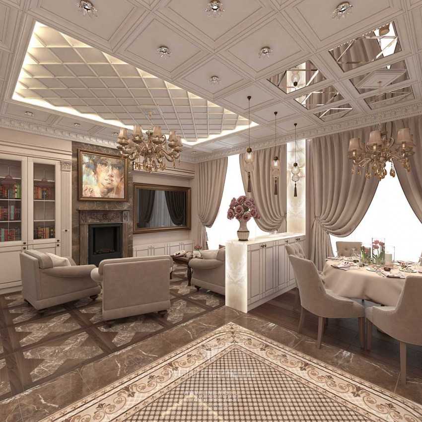 - Даже в классическом интерьере изразцы могут смотреться стильно, однако преимущественно стоит подбирать светлые и однотонные варианты. Плитки со сложными изображениями также могут подойти, но их должно быть всего несколько, чтобы они выделялись на общем фоне и не смотрелись излишне пестро.