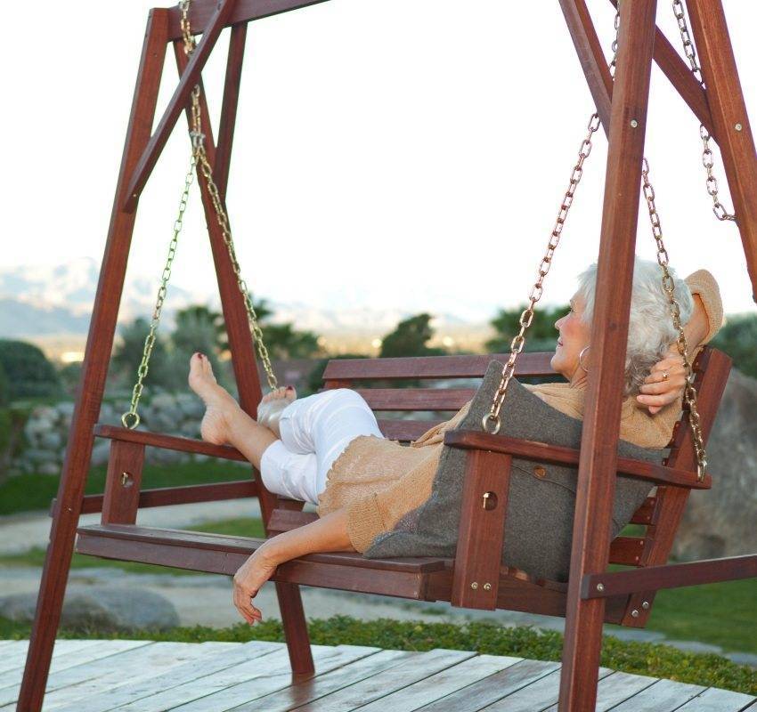 Взрослые тоже не против расслабиться и отдохнуть, вальяжно покачиваясь на качелях