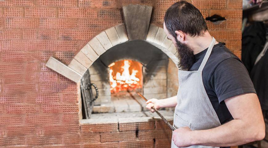 - Перед приготовлением пищи печь нужно как следует разогреть. Идеальное состояние – горячие стенки и догорающие угли.