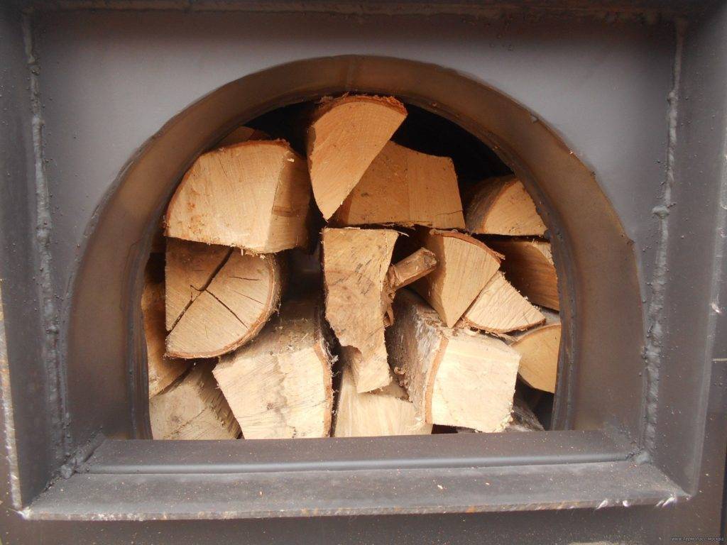 Основное правило здесь такое: заполнять дровами нужно две трети объема топки. При этом поленья плотно не укладывают, оставляют между ними зазоры. Если выкладываете дрова колодцем, то достаточно двух-трех ярусов, 8 или 12 штук. При растопке кладут более тонкую, ровную и хорошо просушенную древесину. В процессе горения подкладывают топливные брикеты и менее качественные дрова.