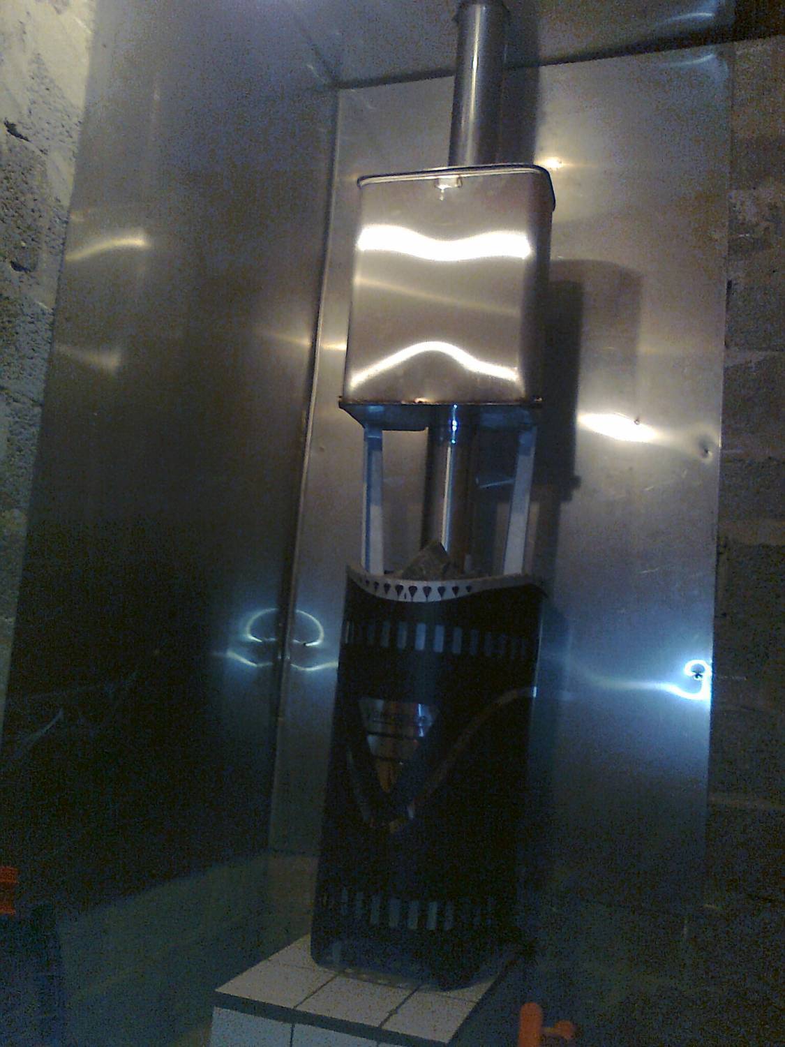 Даже если сама по себе металлическая печь, купленная в готовом виде в магазине уже является украшением парилки, лучше сделать вокруг нее небольшой каменный фартук. Это значительно увеличит эффективность и производительность печи. Да и людям, находящимся в непосредственной близости от металлической конструкции, будет более комфортно, ведь металл «жарит» сильнее, чем камень или кирпич!