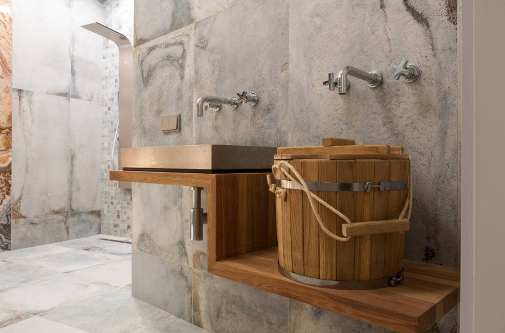 Здесь, как ни в одном другом помещении, требуется особое внимание уделить выбору отделочного материала. Он должен переносить перепады температур, влажности, не разбухать от пара
