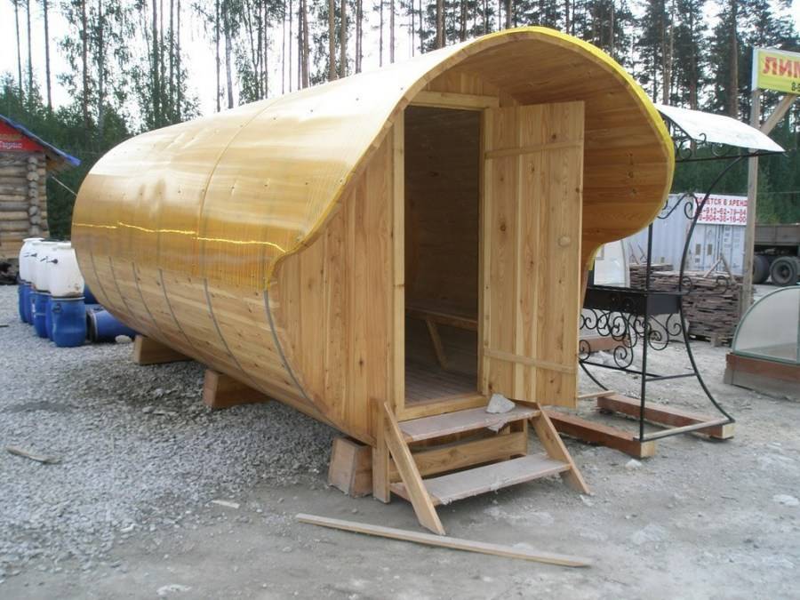 - Так называемая — мини баня. Отличается простотой конструкции и малым временем для ее строительства;