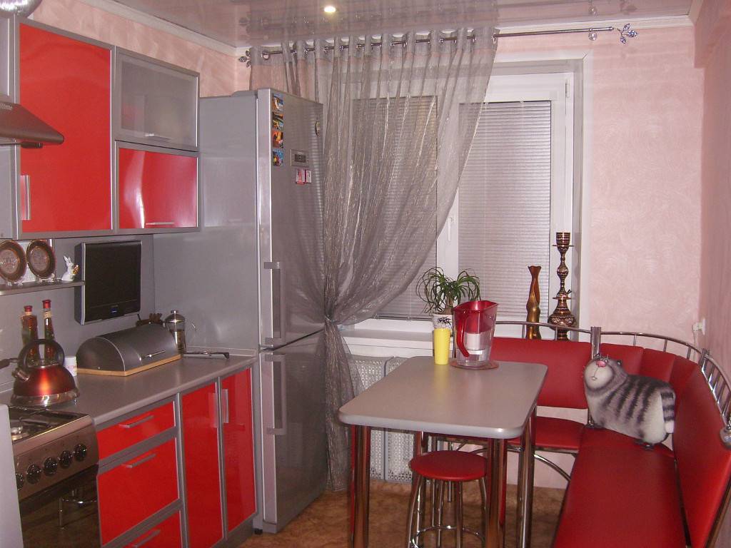 переносят вход в кухню из коридора в зал, а в нише, образовавшейся на месте бывшего коридора, устанавливают холодильник или делают встроенный шкаф.