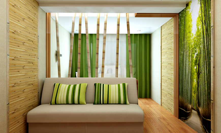 Выбор материала для перегородок зависит от пожеланий владельцев, стилевого оформления и др. Например, в эко-стиле исключены пластик, различная синтетика и пр. Здесь подойдут природные материалы: натуральный камень, дерево, бамбук. Можно использовать для перегородки живые растения.